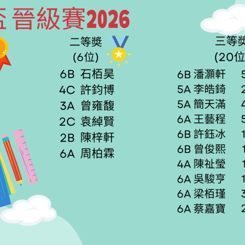 恭喜十月數學速算挑戰得獎同學