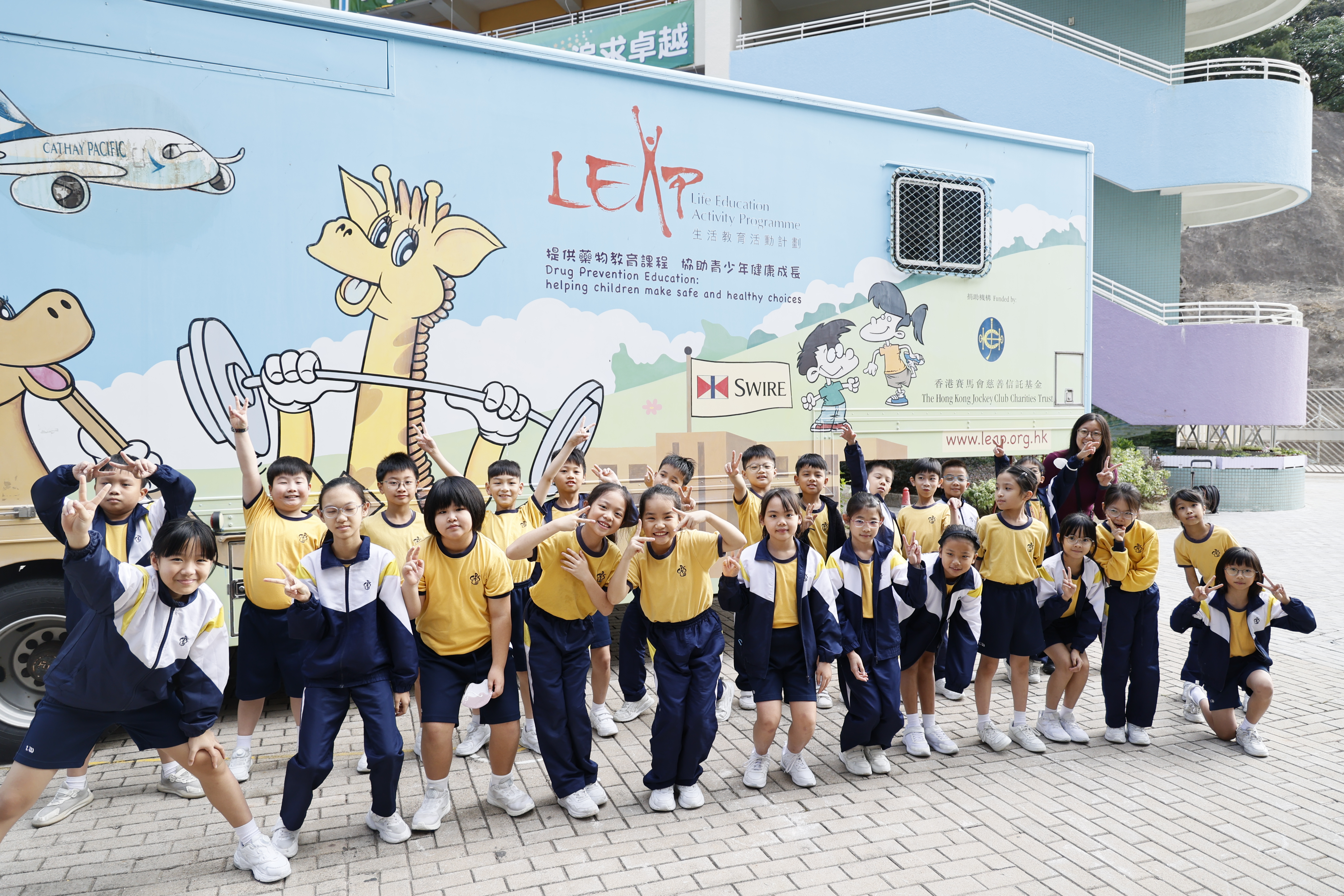 為配合本校價值觀教育課程,本校特別安排全校學生參與生活教育活動計劃(LEAP)「哈樂車」的學與教活動。學生在多媒體、多感官的流動課室中,透過遊戲及互動體驗,學習健康生活及預防濫藥的知識,幫助學生認識正確的健康資訊,分辨是非,並以自律和責任感作出明智選擇,尊重身體與生命,實踐美德,建立良好的生活習慣,培養積極正向的人生態度,活出健康而有意義的人生。