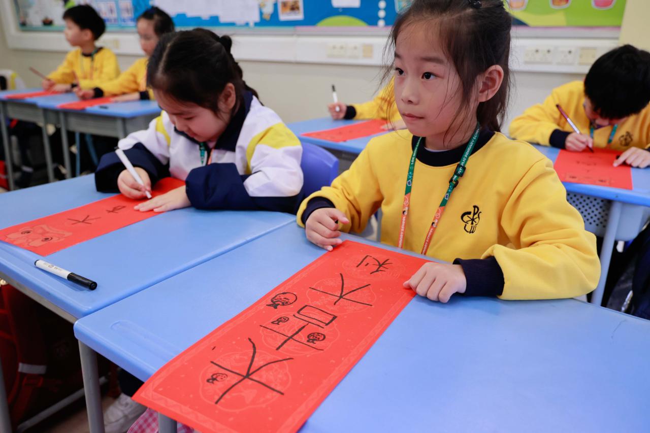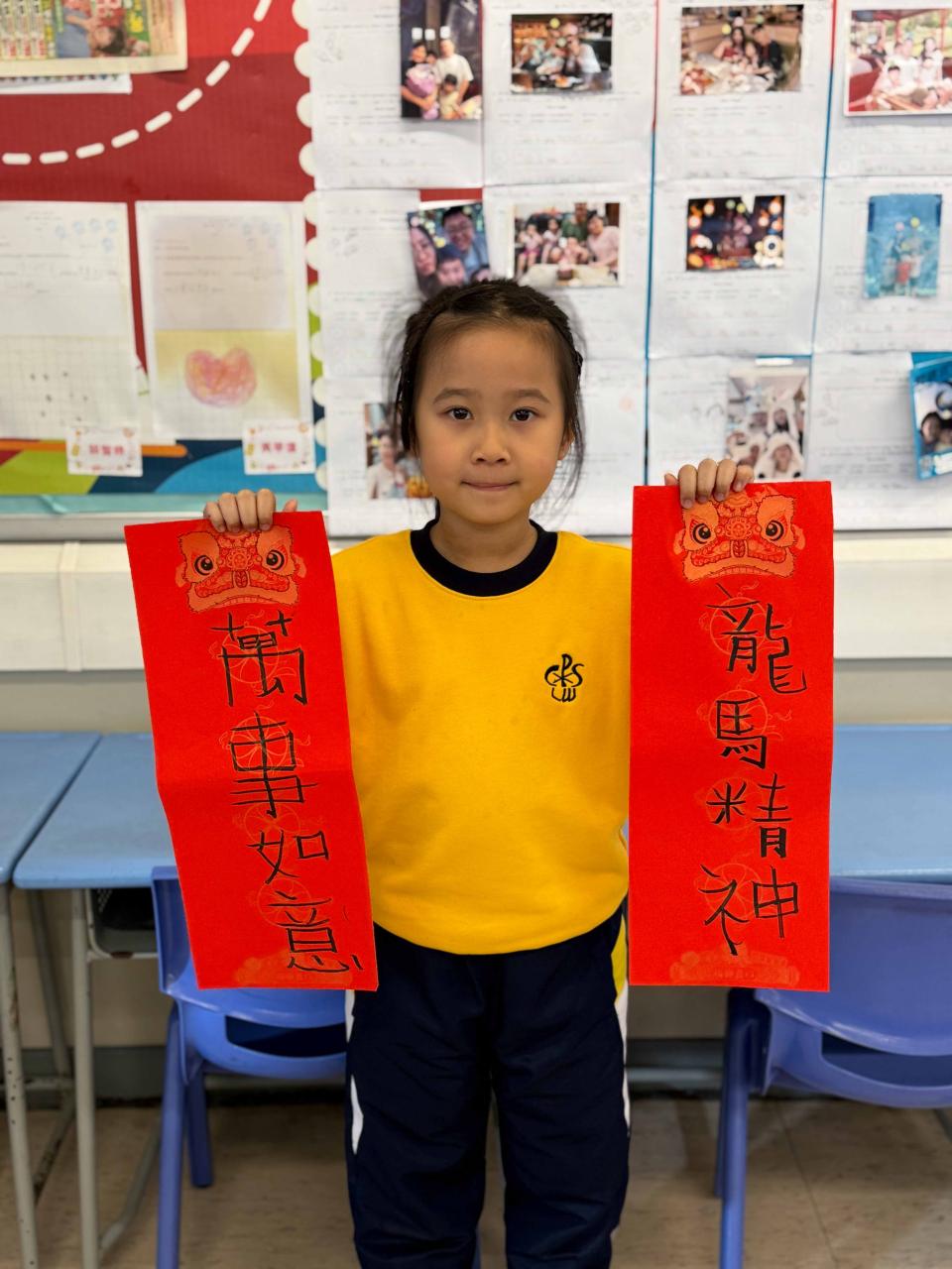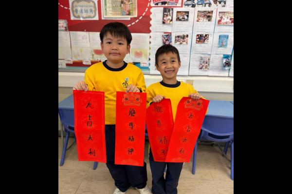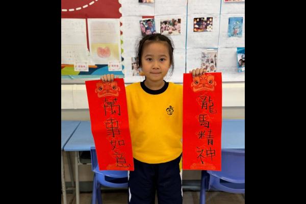 2026-01-26 農曆新年將至,校園洋溢着濃厚的節日氣氛。為了讓一年級學生感受傳統文化的魅力,本校於學滿FUN時段舉辦了製作揮春活動。在老師的悉心指導下,同學們首先認識了春聯的意義及「身體健康」、「學業進步」、「笑口常開」等祝福語,隨後便親手執筆揮毫,體驗書法的樂趣。在活動中,大家拿起毛筆時個個神情專注,一筆一畫寫下對新一年的美好期盼。活動不僅讓學生體驗到中國傳統藝術,更讓他們明白春聯背後承載的心願。在此,祝願各位家長和同學新春快樂,萬事如意,主恩滿溢!