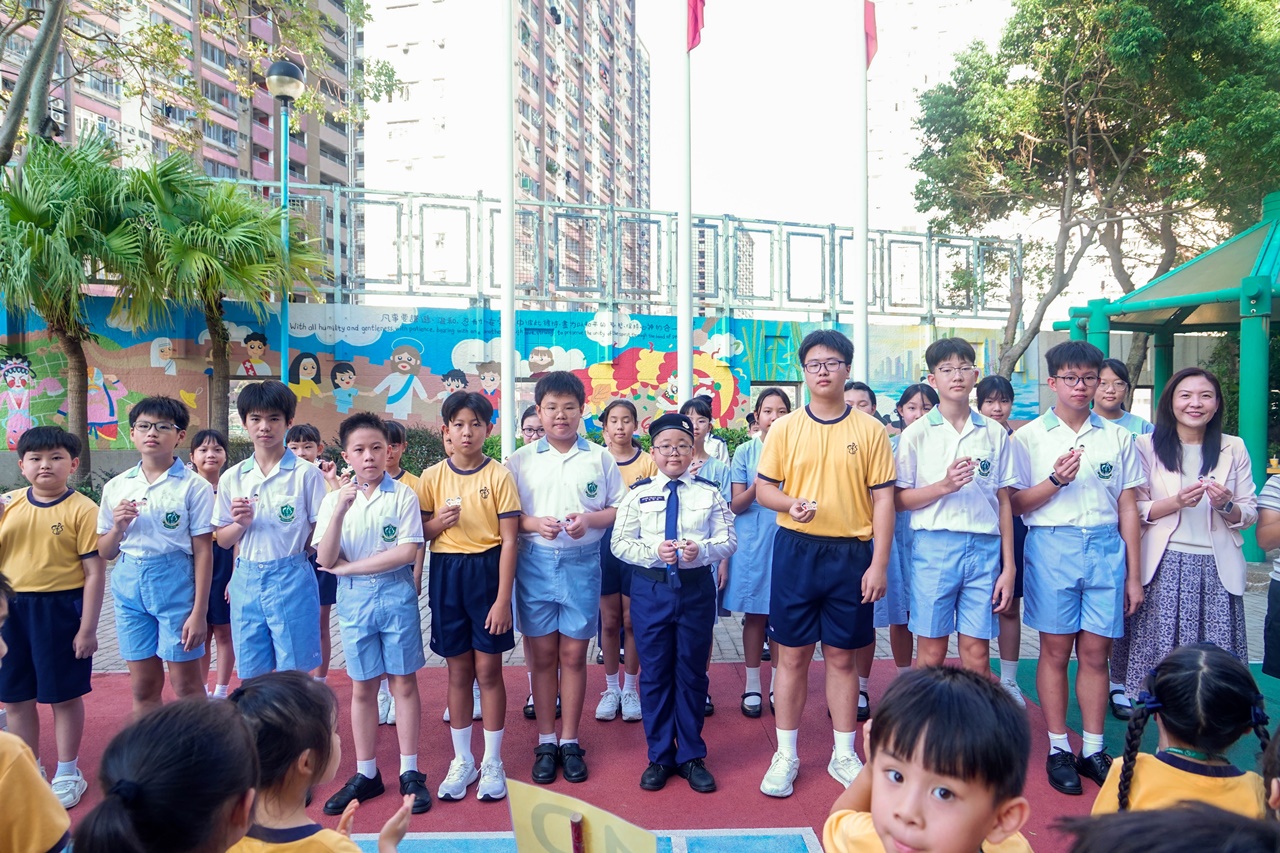 2025-09-30 為慶祝中華人民共和國成立七十六周年,本校全體師生於國慶日前夕一同進行升旗禮,隨着國旗緩緩升起,大家一起高唱國歌。及後,老師以國家的科技發展為題,為同學進行國旗下講話,勉勵學生為祖國的繁榮昌盛貢獻力量。最後,透過一起聆聽《保衛黃河》,讓學生體會到中國人民保家衛國的精神,並珍惜國家來之不易的和平。