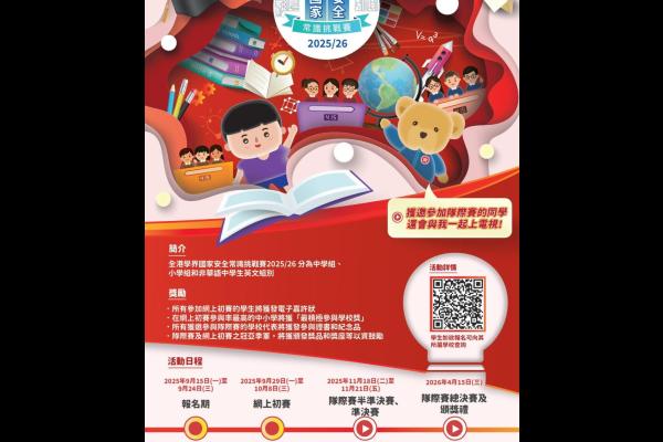 目的 | 為讓國家安全教育繼續植根校園,加強學生對國家安全的不同領域和法律的認識,包括國家《憲法》、《基本法》、《香港國安法》以及 《維護國家安全條例》,藉以提升他們維護國家安全的意識,同時配合每年10月1日的「國慶日」及4月15日的「全民國家安全教育日」,律政司、保安局、教育局及善德基金會在本學年繼續合作舉辦「全港學界國家安全常識挑戰賽(2024/25)」,鼓勵全港學生共同參與,營造維護國家安全的氛圍,凝聚維護國家安全的力量。 |
