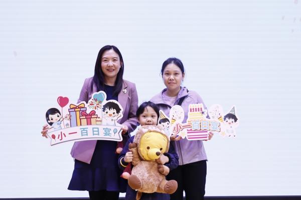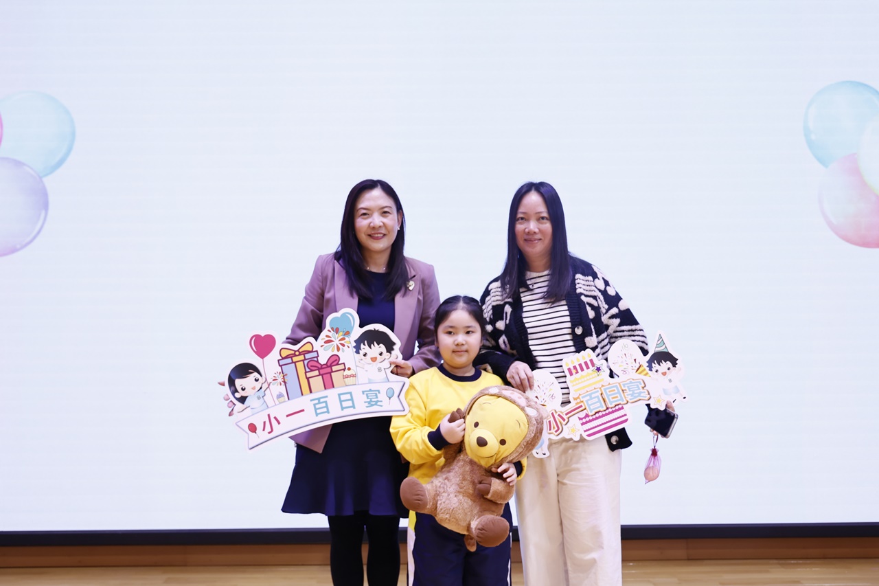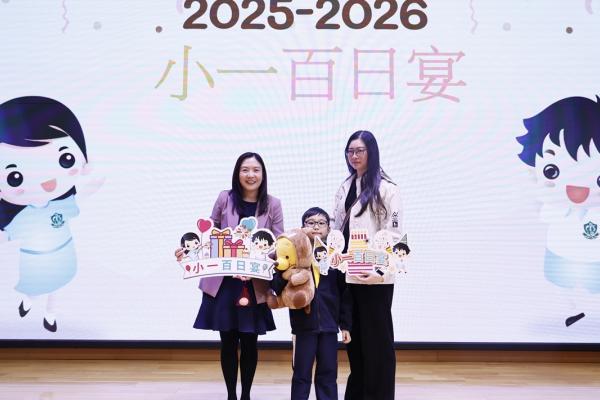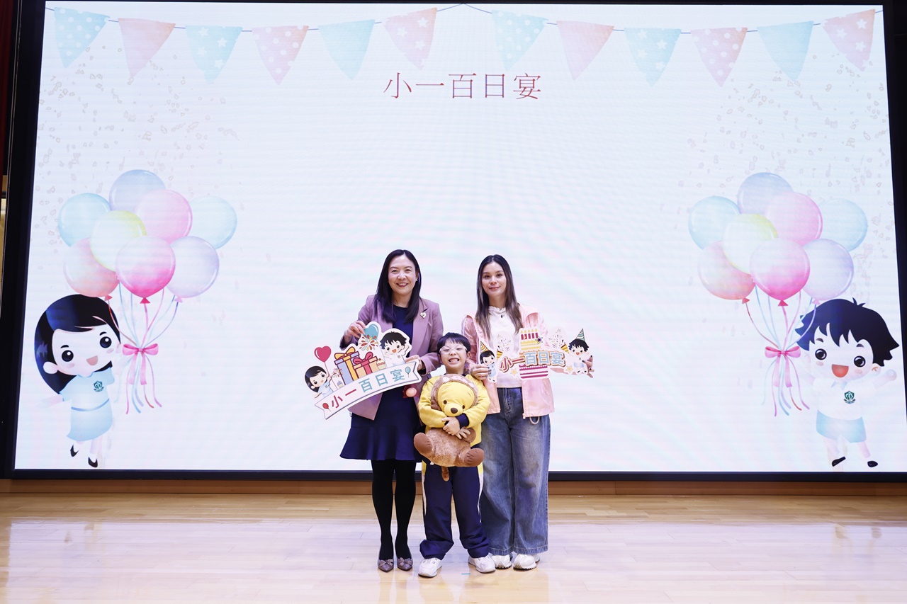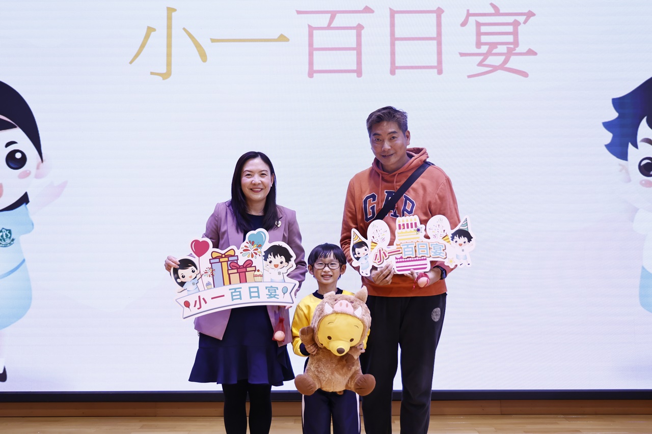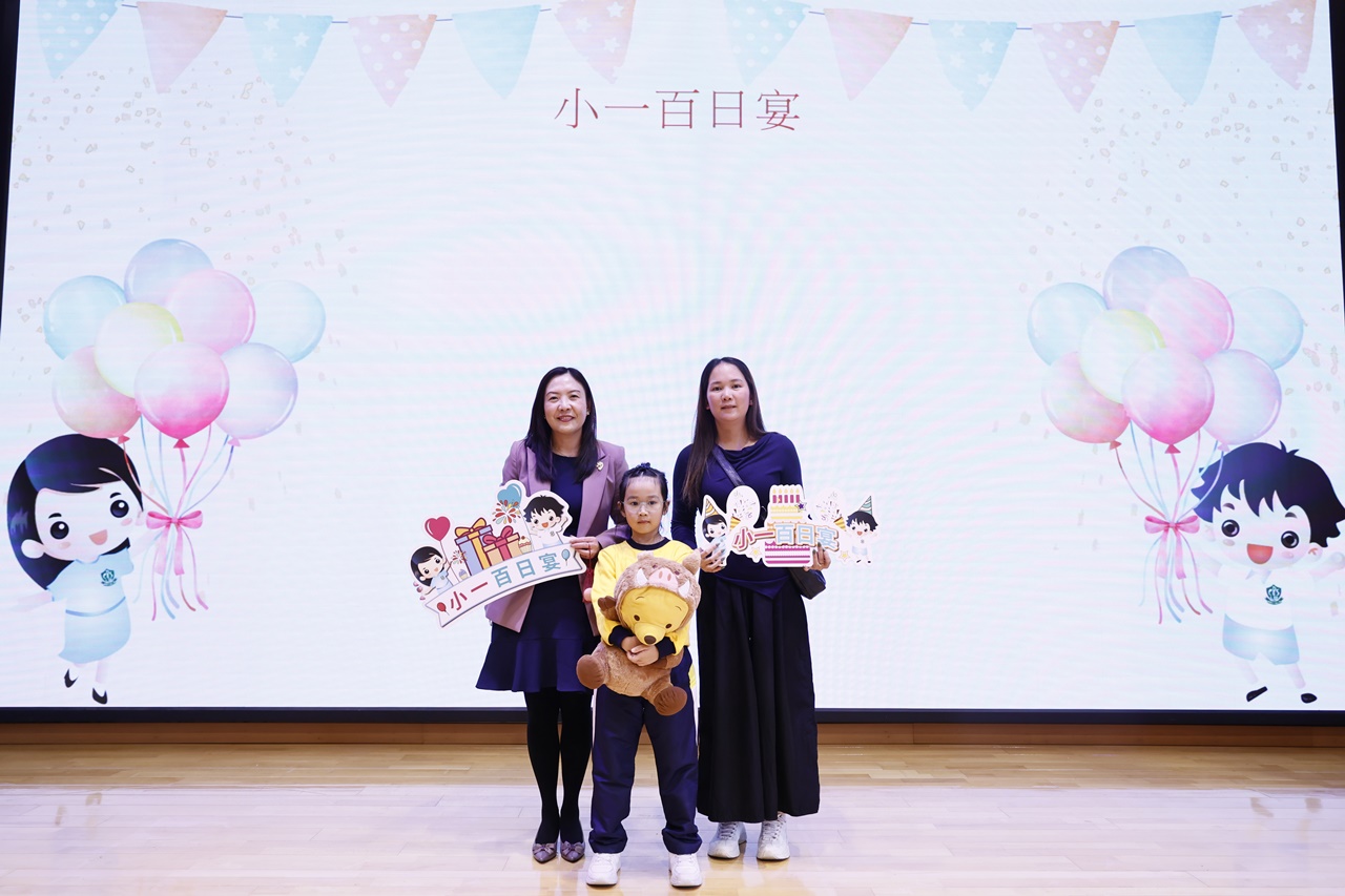 2025-11-21 為慶祝小一學生加入「樂天大家庭」滿一百日,本校邀請學生、家長一同出席「小一百日宴」活動。當天節目豐富,除了可欣賞小一學生在學校的生活片段、玩集體遊戲外,學生亦將心意卡送給家長,以感謝他們的辛勞照顧;學生更收到由家教會送贈的紅雞蛋、糖果花束,以祝福每一位小一學生身體健康、學業進步!