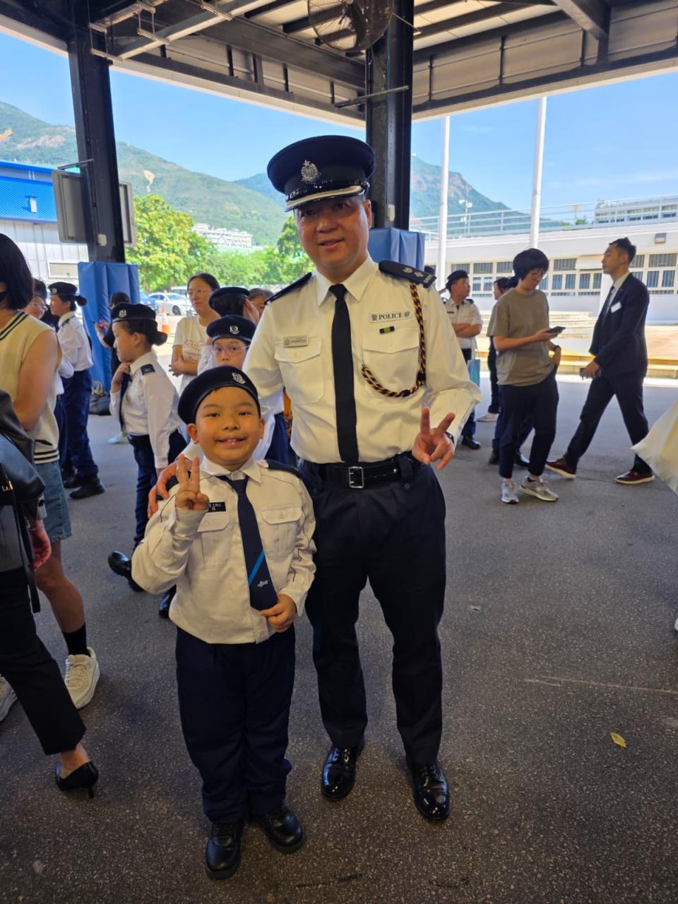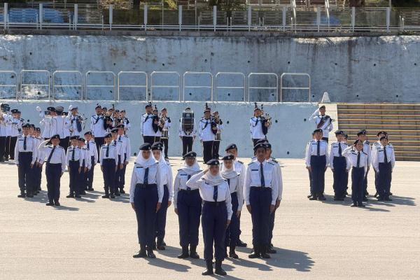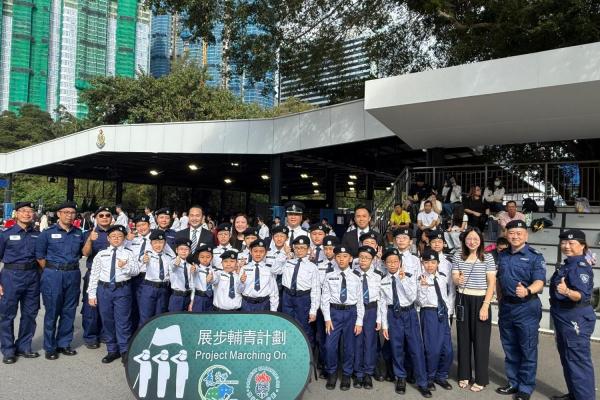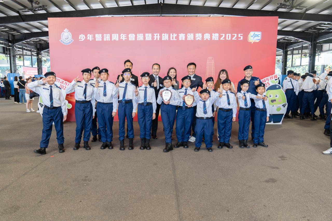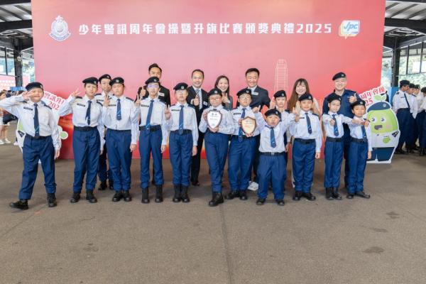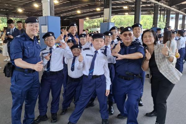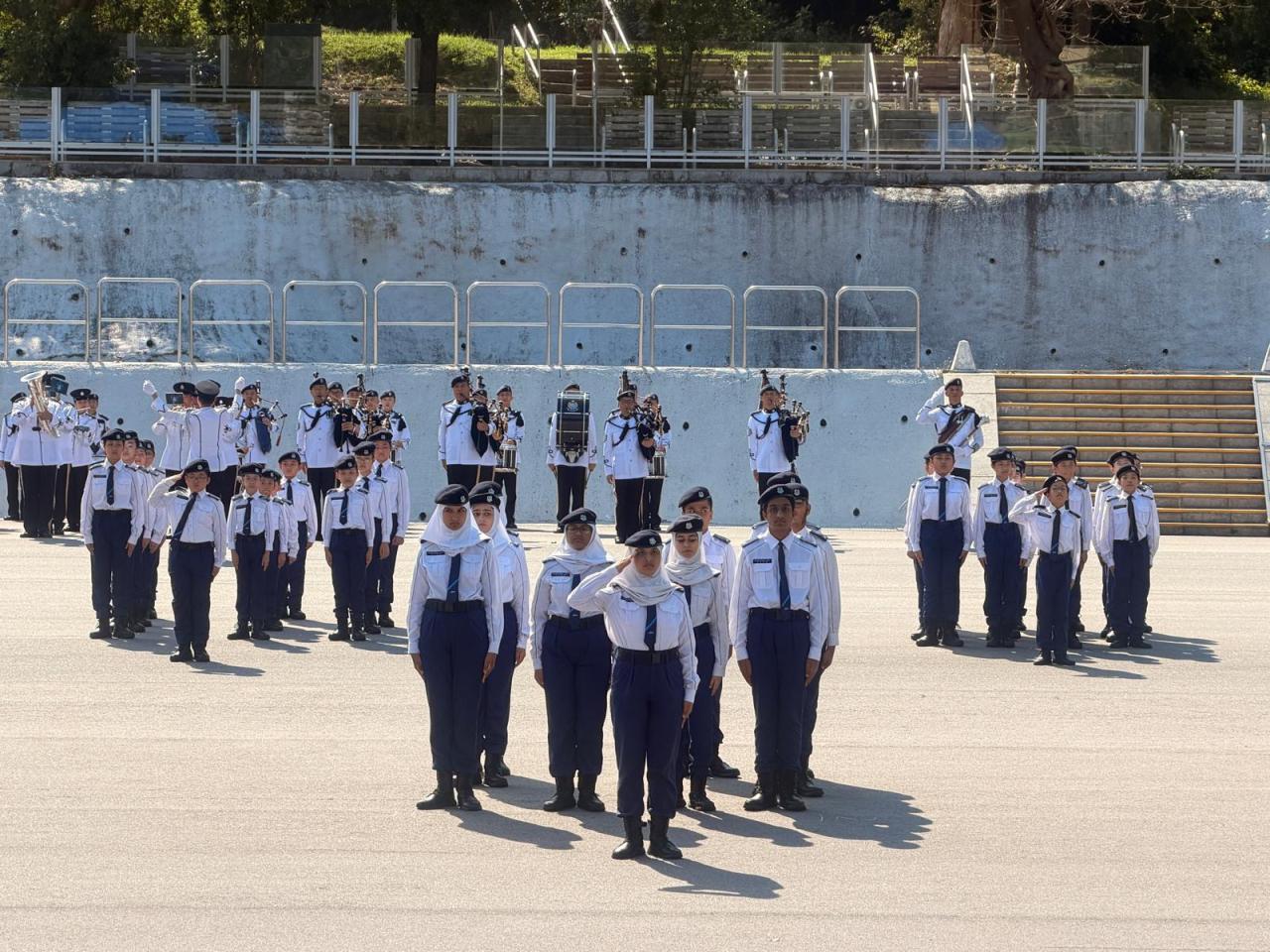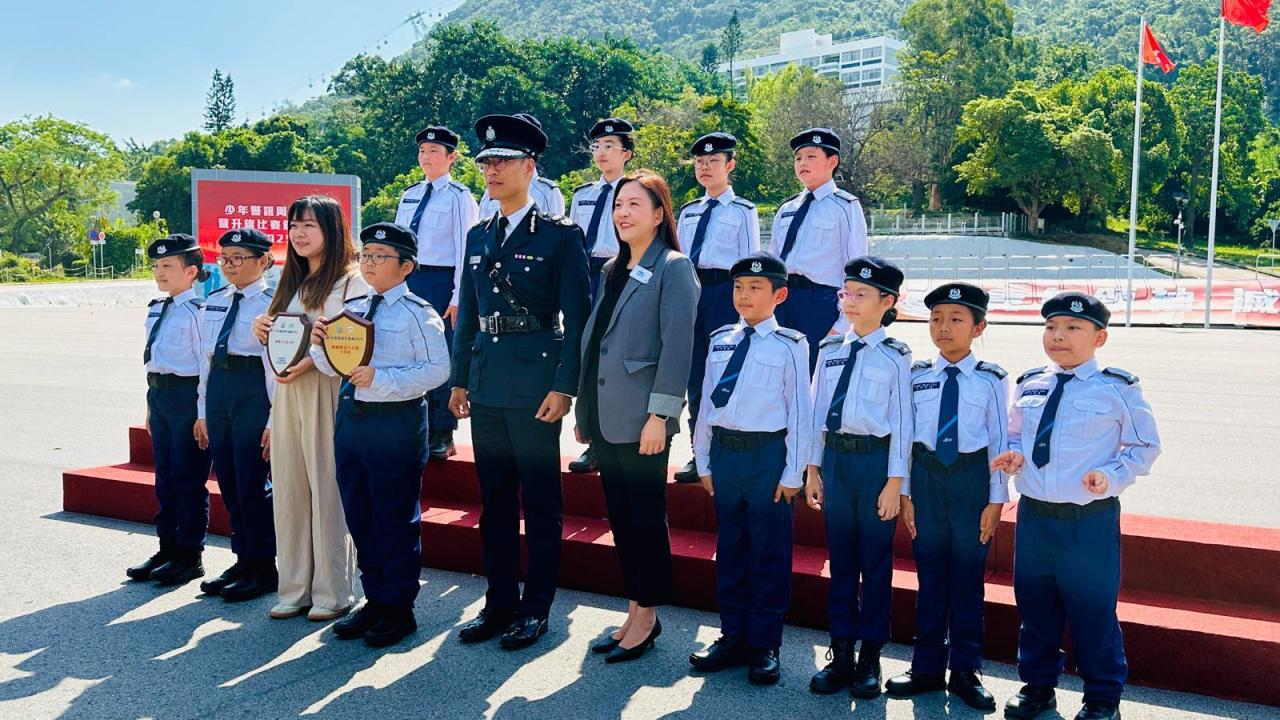2025-11-02 11月2日,香港警察學院隆重舉行「周年會操暨升旗比賽頒獎典禮2025」。典禮由警務處長周一鳴先生擔任檢閱官。邱寶祺校長更親臨現場為樂天的升旗隊同學加油打氣!在莊嚴的儀式與激昂的國歌聲中,同學以鏗鏘有力的步伐、挺拔堅毅的身姿,展現出新時代青年的紀律素養與昂揚鬥志。步操賽場上,樂天同學憑藉全情投入的表現,榮獲「最積極投入小隊」殊榮,而6A洪耀銘同學更榮獲「小隊優秀隊員」。這些榮譽的背後,是同學們在一次次訓練中不畏艱辛、於烈日下揮灑汗水的堅持與付出!