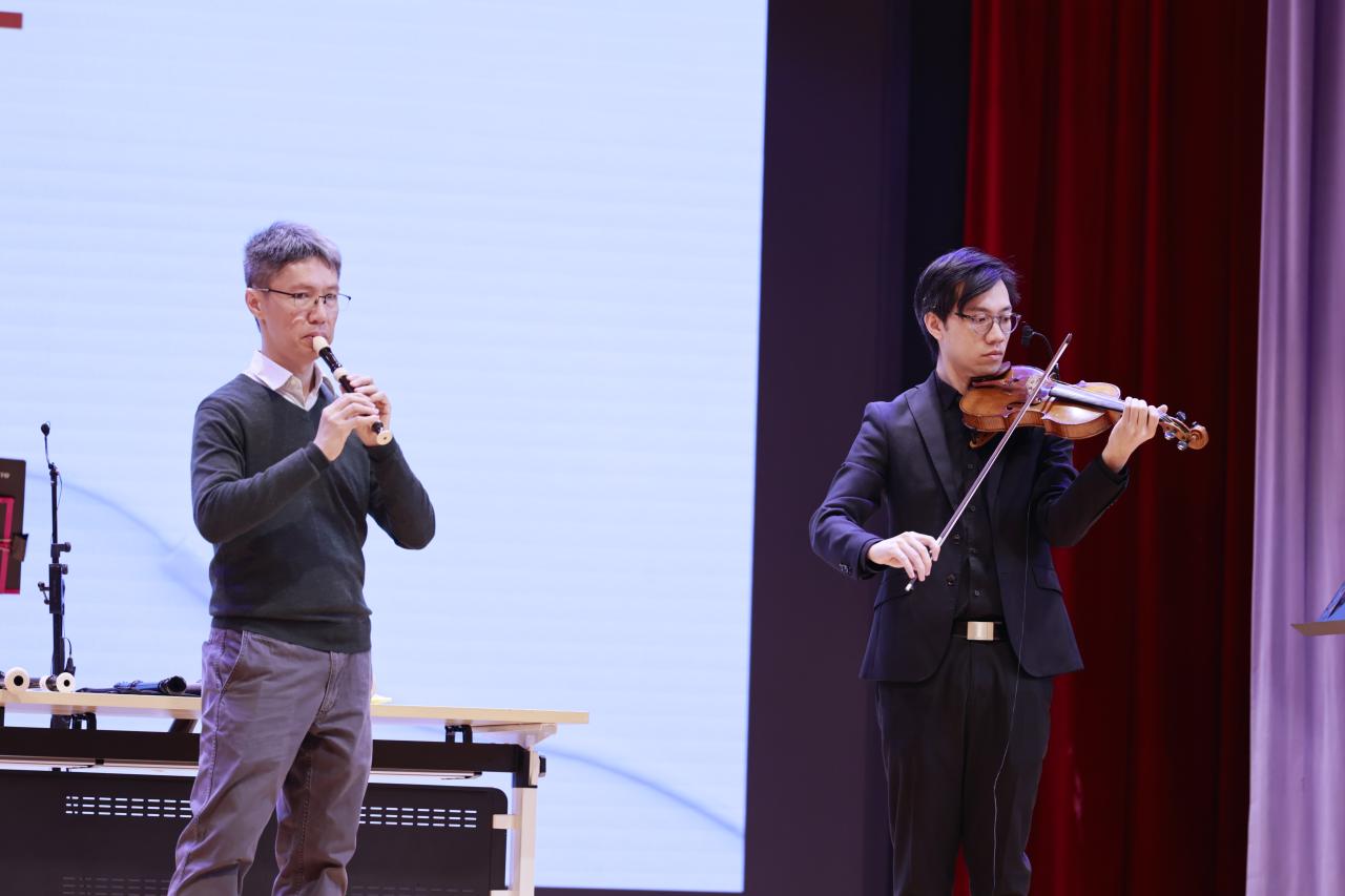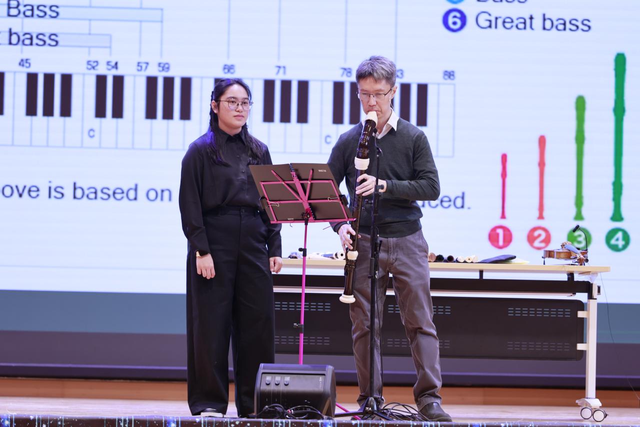 We were honored to have the Music Team from The Education University of Hong Kong (EdUHK) and renowned recorder player Mr. Lau Sze-chung with us. Mr. Lau not only performed beautifully but also introduced students to various types of recorders and their unique timbres. From the high, crisp notes to the deep, mellow tones, the diverse range of sounds fascinated the audience, deepening their appreciation for the instrument family. Following this, the EdUHK Music Team guided students through interactive listening activities, where everyone engaged deeply with the music.