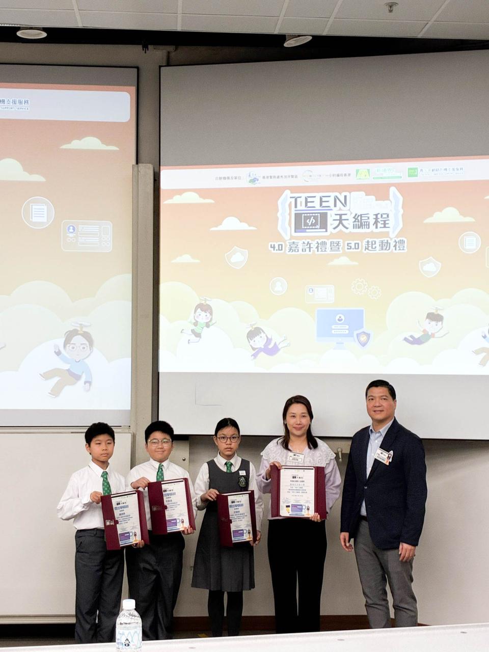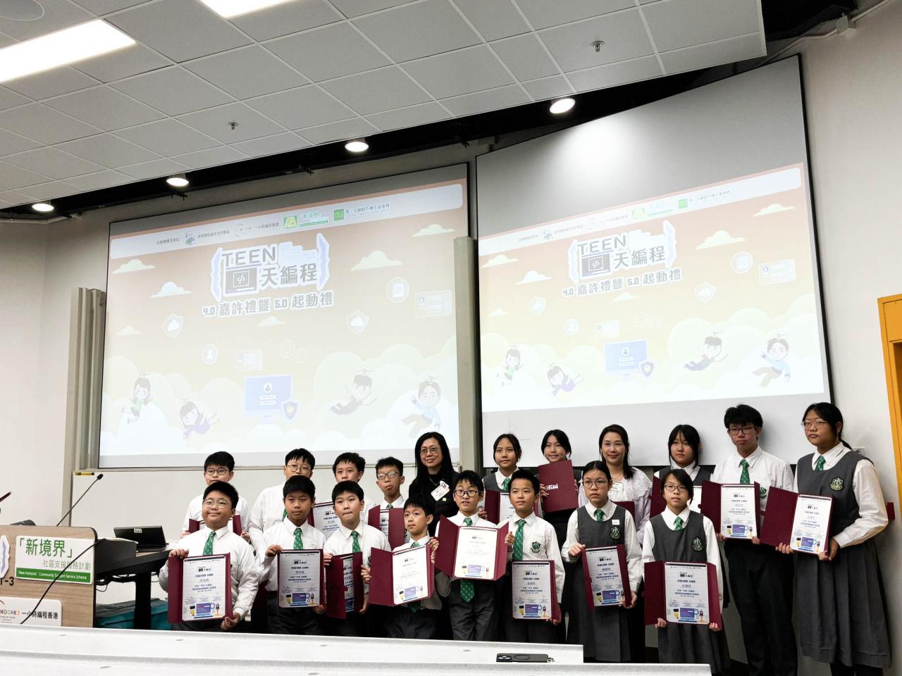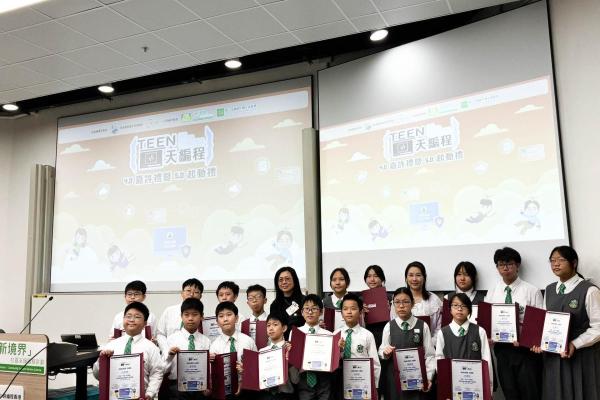 2026-01-17 本校學生參與由秀茂坪警區主辦的「Teen天編程嘉許禮」活動,嘉許學生在過去一年積極投入預防網絡欺凌編程小組活動,展現出愛國小公民的良好表現。當日活動包括成果分享、頒獎、結業禮及大學遊蹤,並由家長共同見證孩子的努力與成長。期望透過此嘉許禮及活動,培養學生正向價值觀,推動健康網絡文化,在學習與生活中持續實踐尊重與關愛。