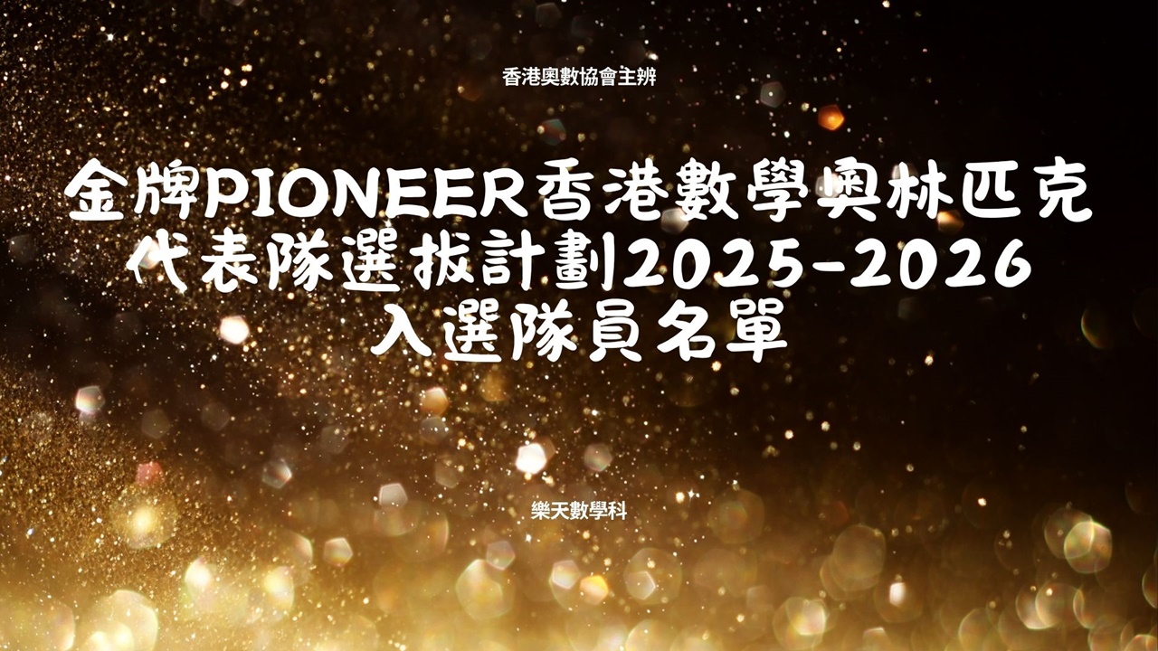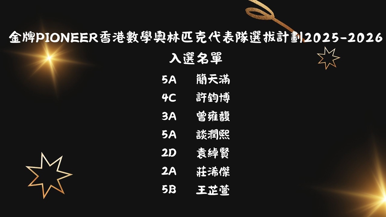 恭賀7位同學入選「金牌Pioneer香港數學奧林匹克代表隊選拔計劃2025-2026 」隊員。
