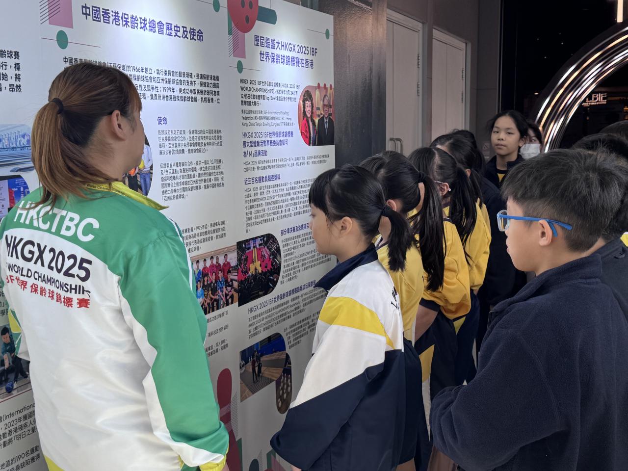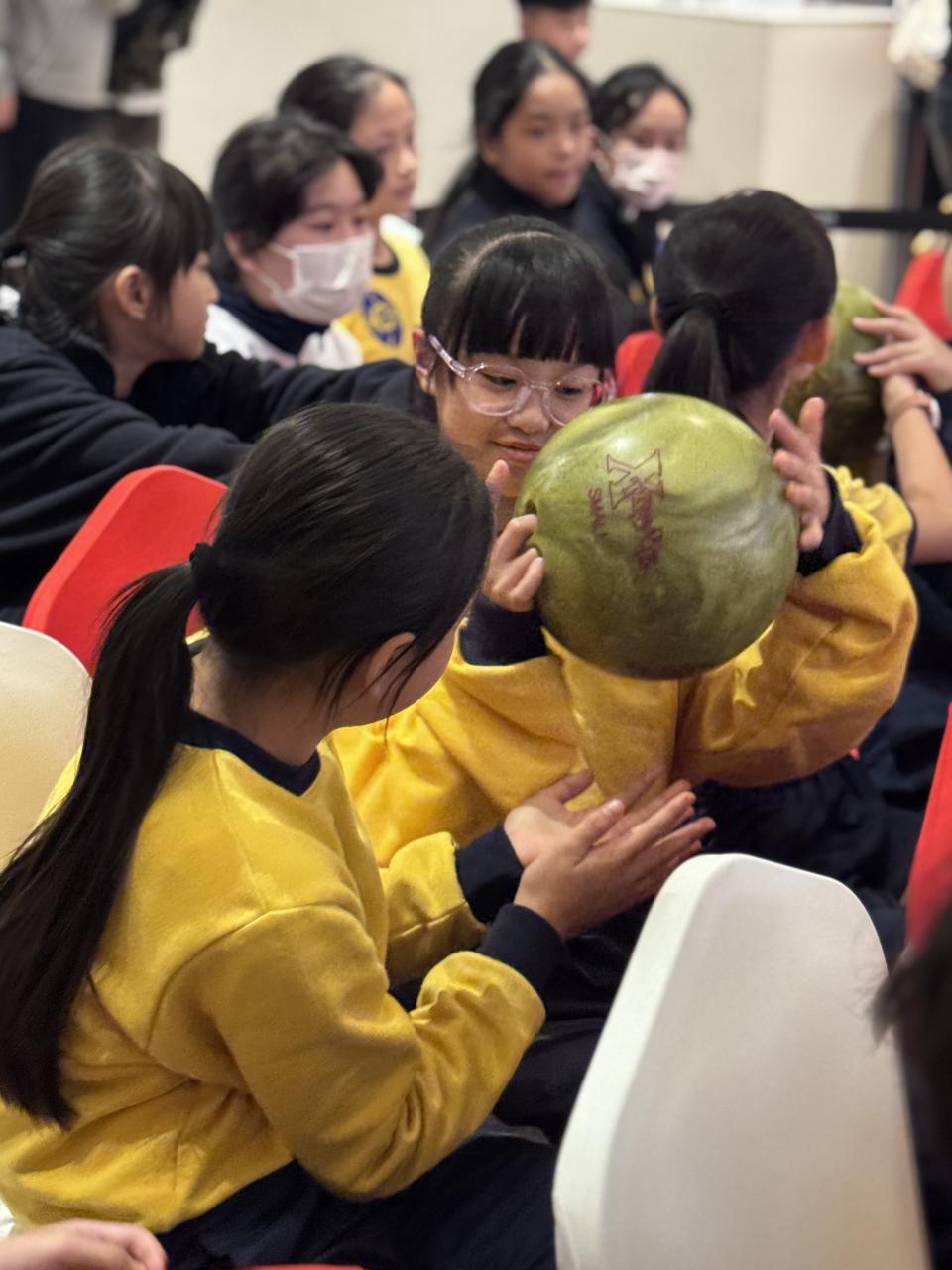 The schedule was packed with enriching activities. Students began with a session led by professional guides, where they learned about bowling rules, scoring techniques, and the glorious history of the Hong Kong, China representative team in a fun and accessible way. The students were particularly thrilled to get "hands-on" with the equipment, touching professional bowling balls of different weights. For many, it was their first encounter with professional gear, and they listened intently, eager to try it out themselves.