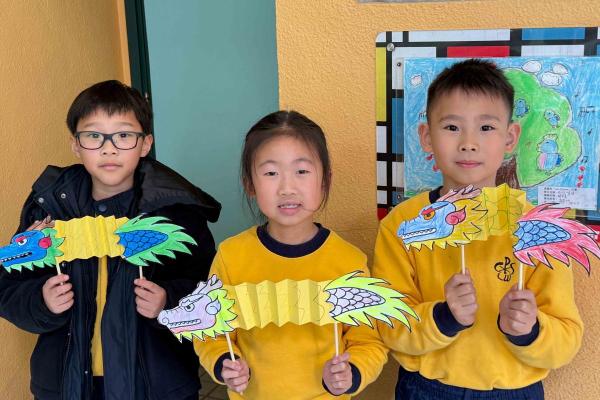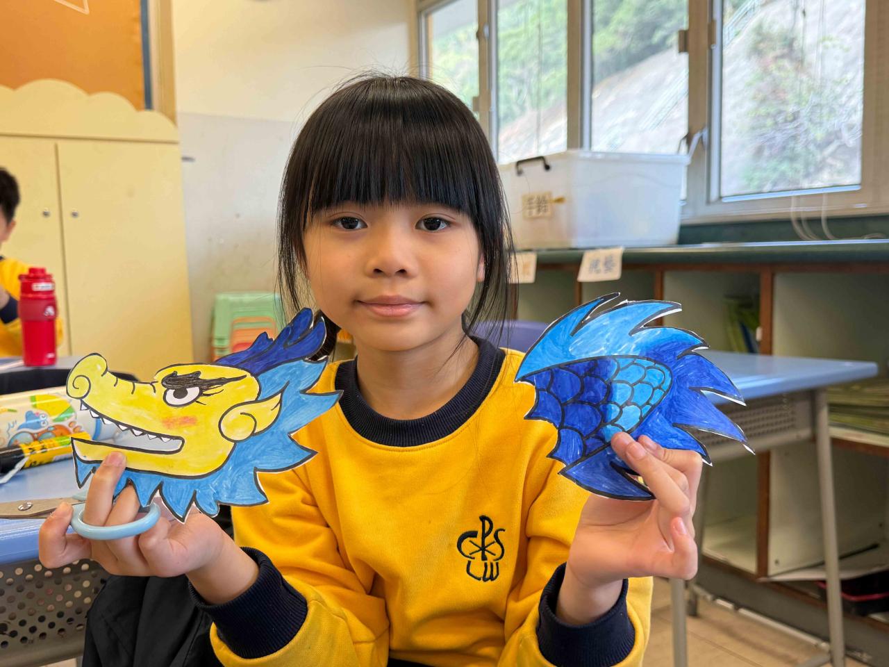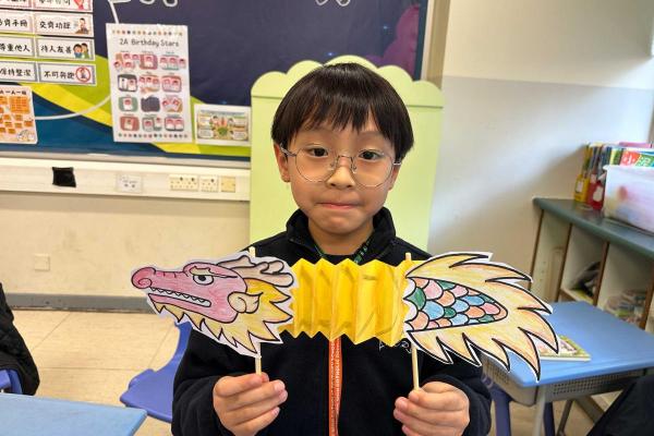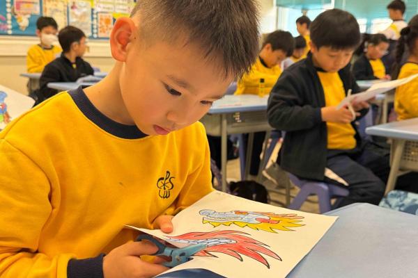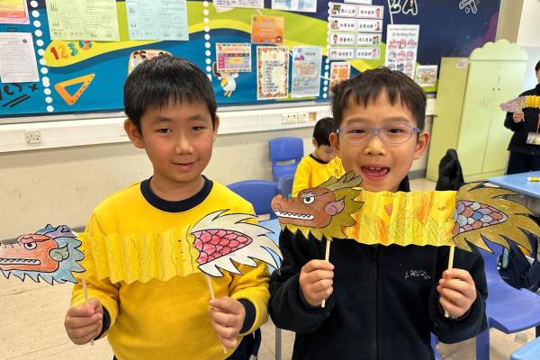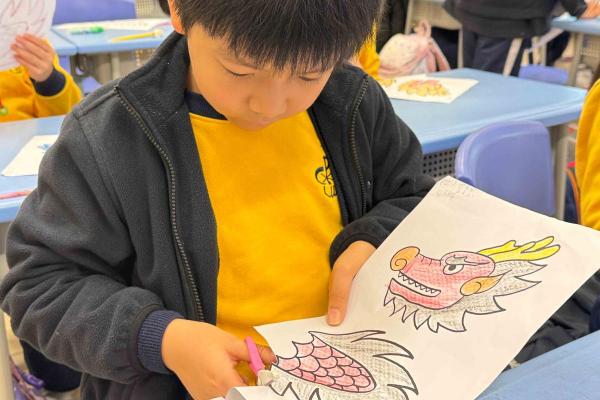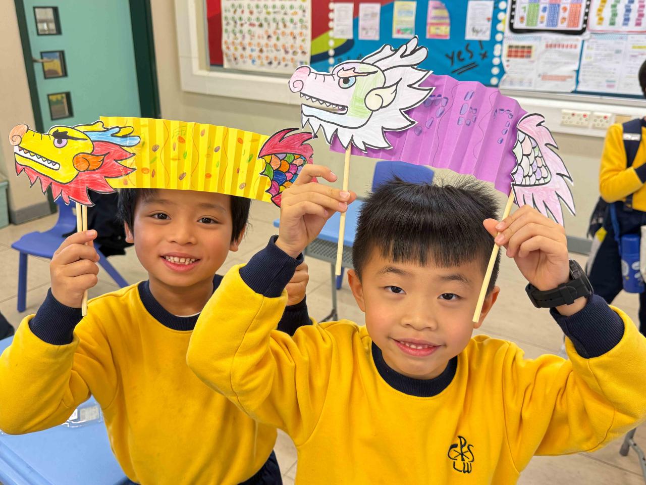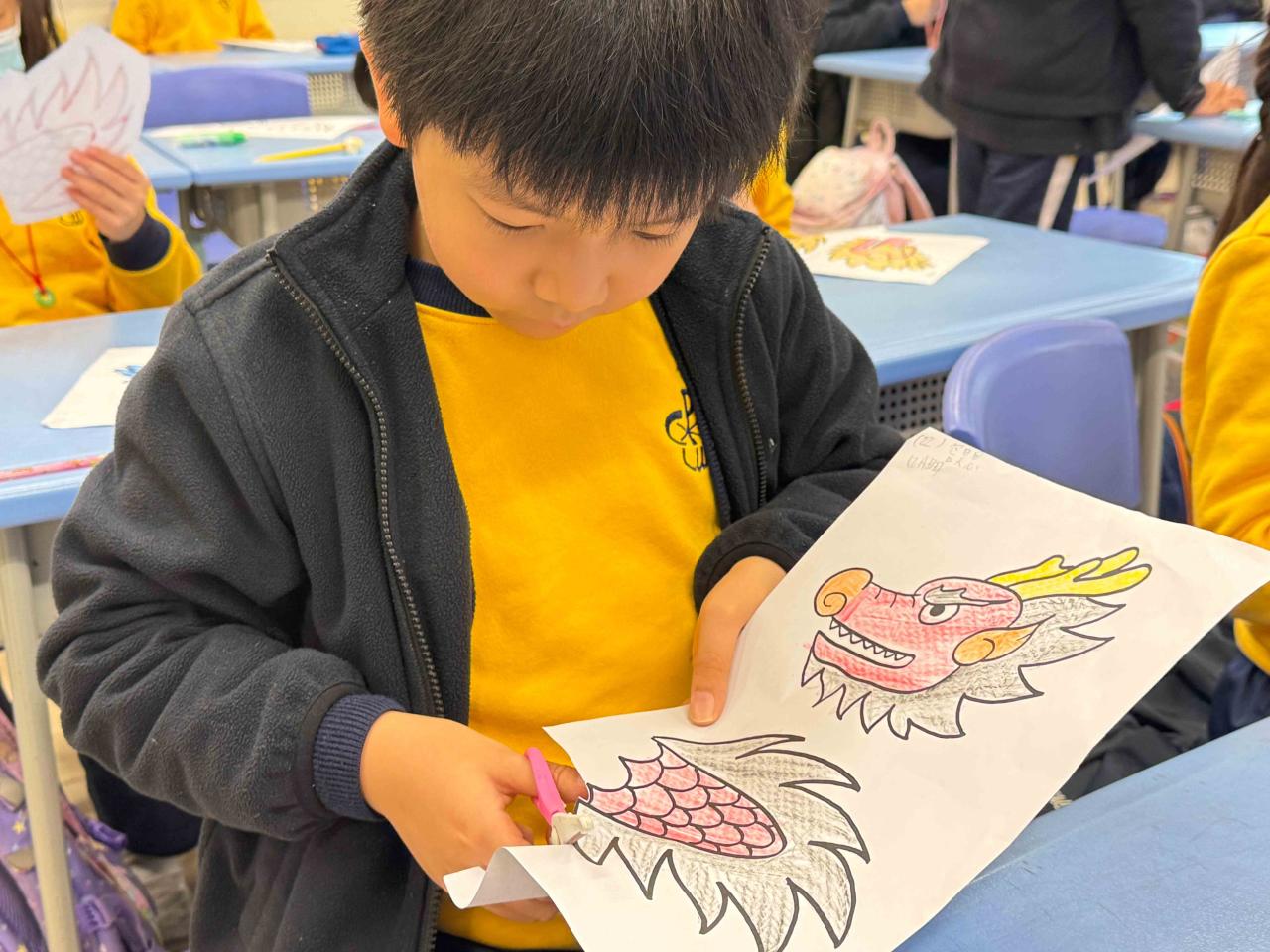 課堂上,老師先介紹了新年的傳説故事及其背後的文化含義。隨後,在老師的悉心指導下,同學們運用龍頭與龍尾圖案、彩紙及木筷子,一邊發揮創意塗上繽紛色彩,一邊認真剪裁與組裝。活動尾聲,隨着賀年音樂響起,同學們興奮地揮動手中的舞龍作品,互相祝賀,校園內洋溢著濃厚的新春喜慶氣氛。這次活動在他們心中播下了傳承文化的種子,更讓他們明白春節的由來及傳統習俗。