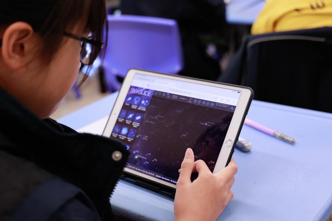 五年級學生則帶領大家仰望星空,探索「我們如何利用星空導航?」。課堂引導學生認識星座位置與天體運行的規律。學生在模擬活動中嘗試利用北極星辨別方向,理解古代航海家在茫茫大海中如何利用天文知識指引航程。這課程不僅豐富了學生的天文知識,更激發了他們對宇宙奧秘的無限想像。