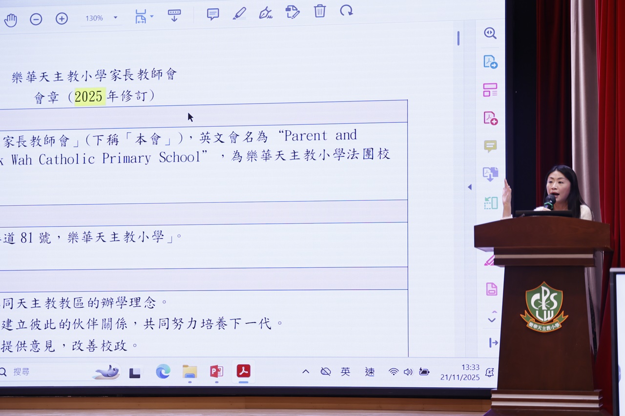 25-26年度家教會會員大會已於2025年11月21日順利完成,會議上已通過會章修訂、省覽去年度財務報告及活動。