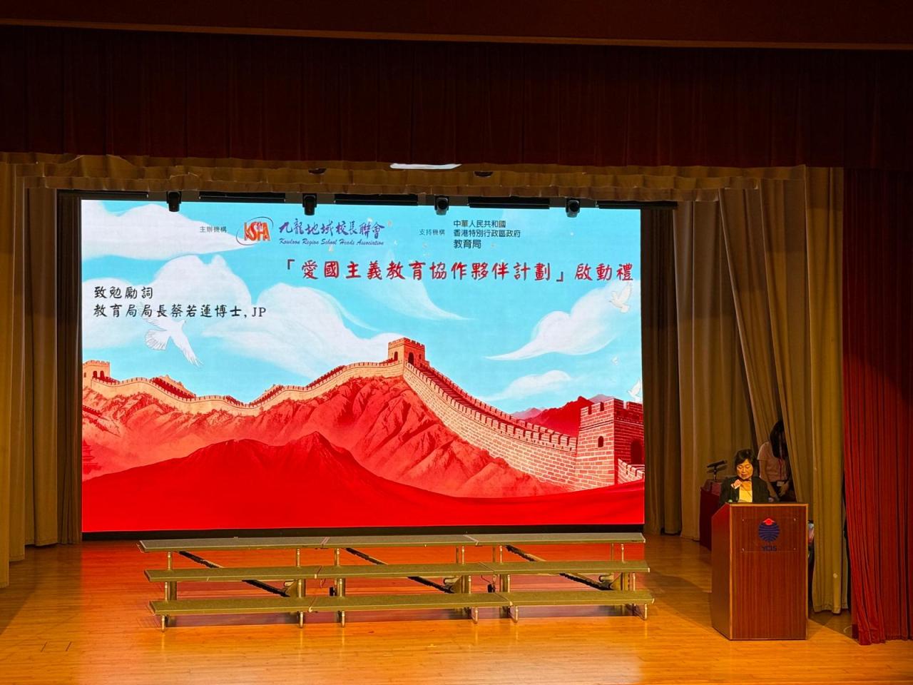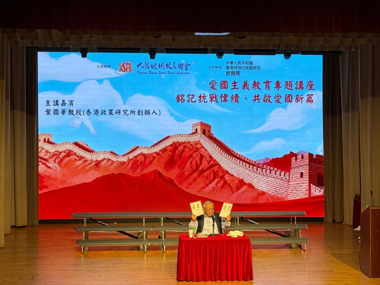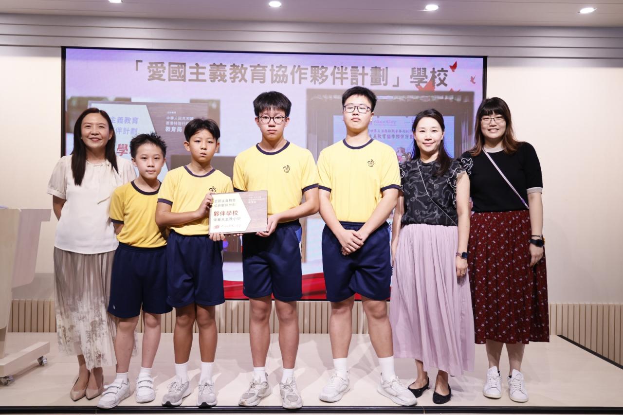 為配合國家推動愛國主義教育的重要方針,本校邱寶祺校長、陳志紅主任代表參加「抗戰勝利暨世界反法西斯戰爭勝利 80 周年」紀念活動,邱寶祺校長在「愛國主義教育協作夥伴計劃」啟動禮中,由教育局蔡若蓮局長JP頒發夥伴計劃獎座,以深化學校的愛國主義教育,培育學生的家國情懷為目標。