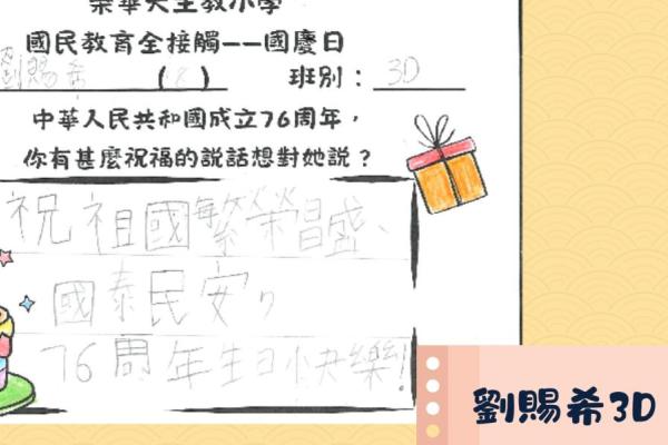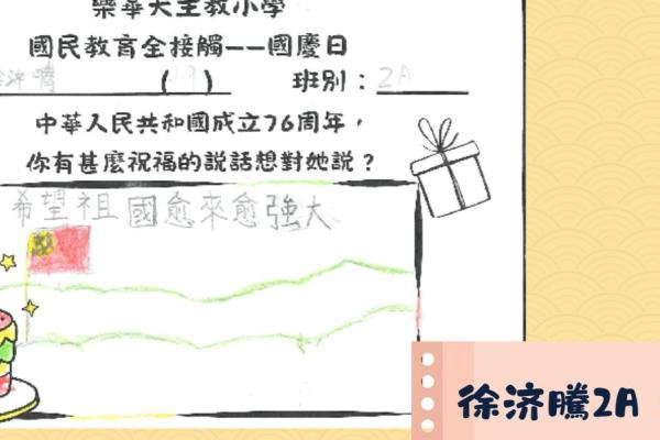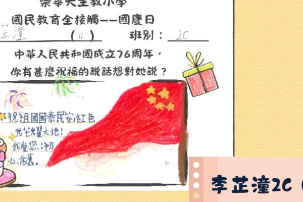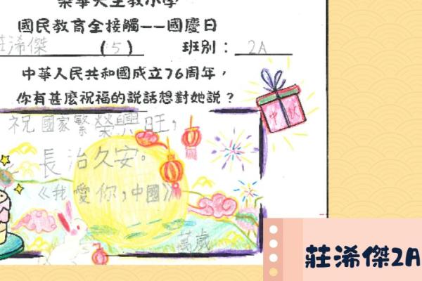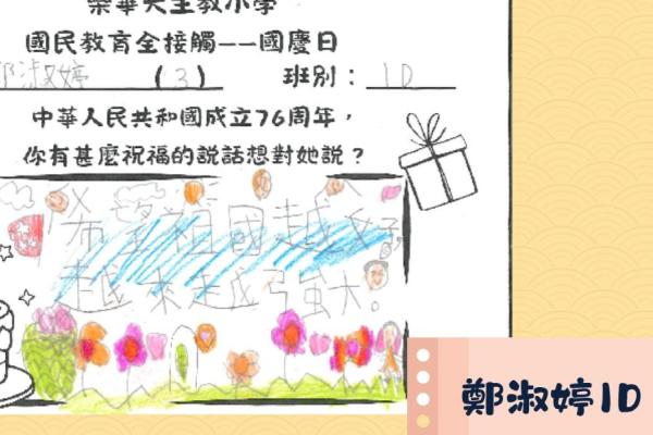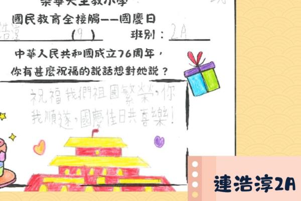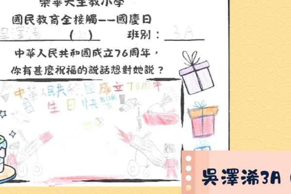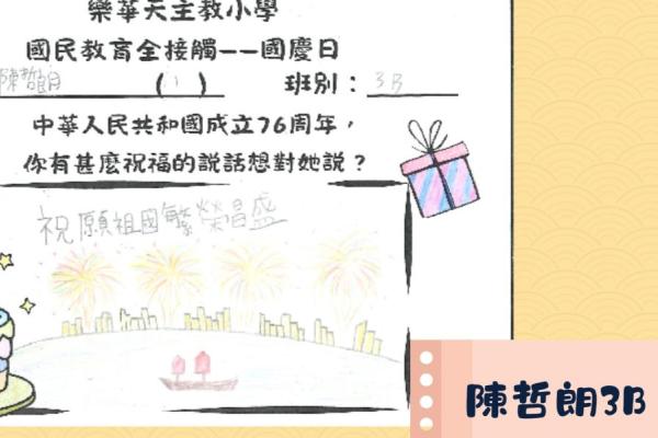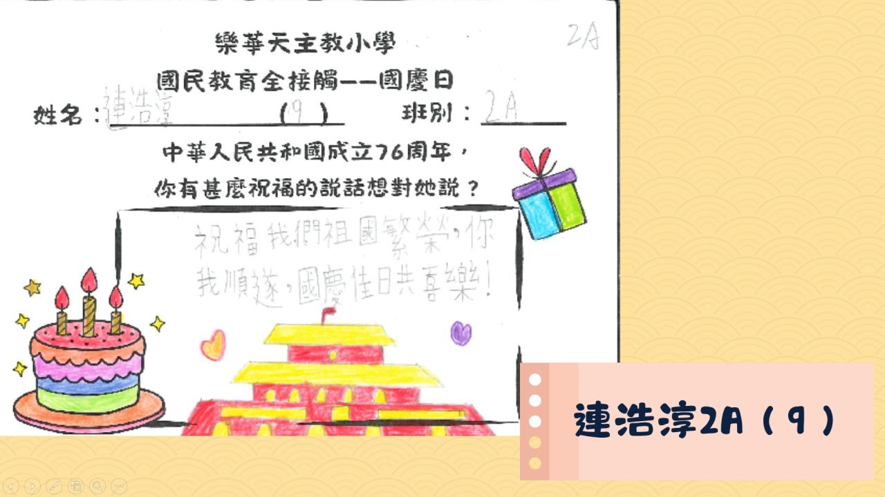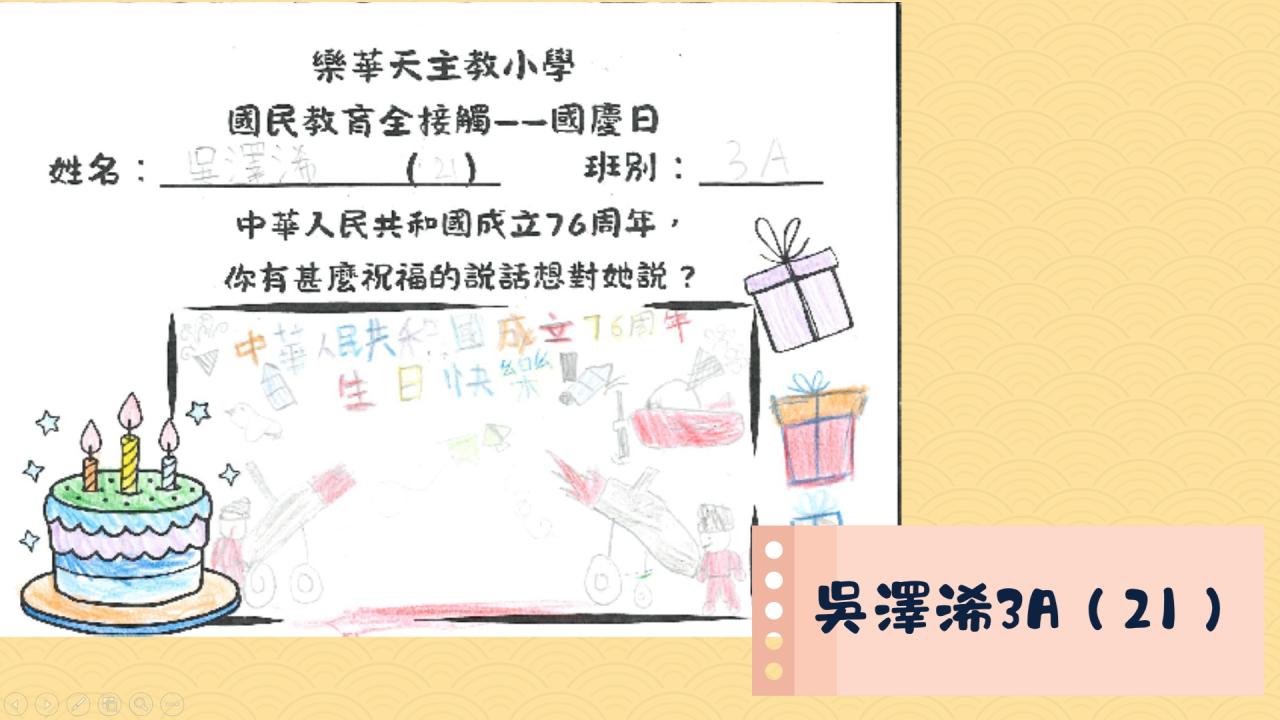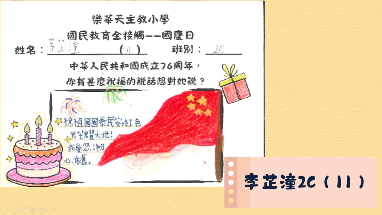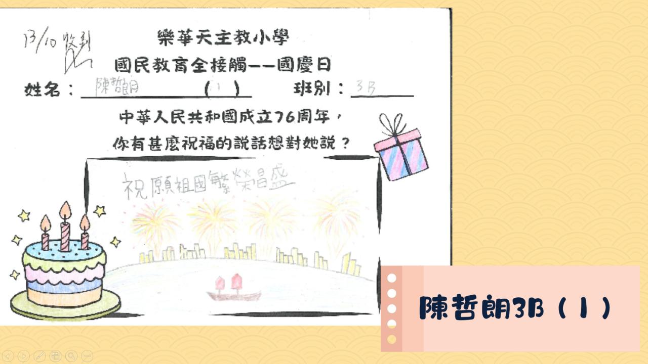 樂華天主教小學的同學們積極參與國民教育全接觸——「國慶日」活動,以圖文作品表達他們對祖國的感情和祝福,增強自我作為中國人的身份認同感。