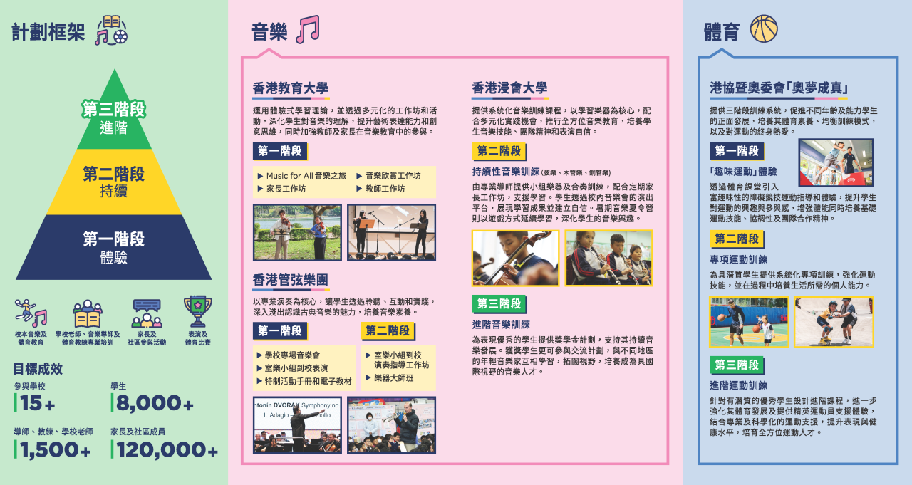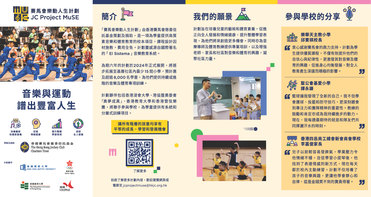 我們衷心感謝香港賽馬會慈善信託基金提供此持續而有系統的專項訓練,讓孩子們在音樂與體育領域中盡展潛能,收穫滿滿的自信與成就感。讓我們繼續在體藝路上,綻放最耀眼的光芒!