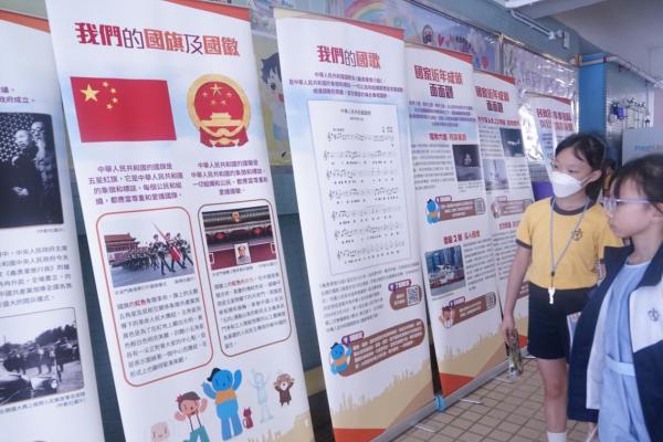 在國慶節期,本校透過國民教育展板,圖文並茂地向學生介紹祖國的歷史文化及近年成就,同學們都投入閱覽,加深對國家的了解,提升國民身份認同。